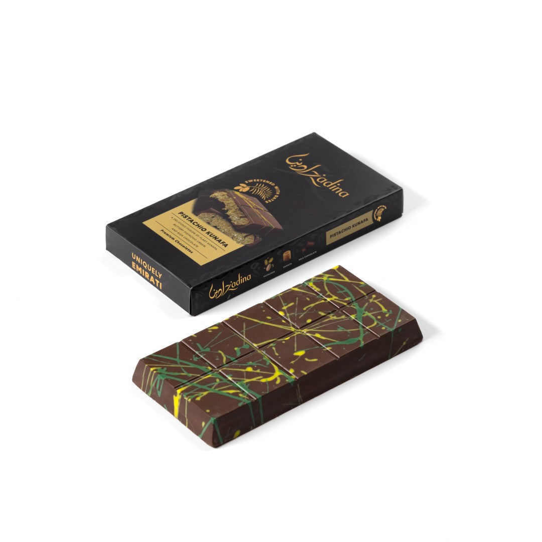 Date-Sweetened Pistachio Cream Kunafa Chocolate Bar